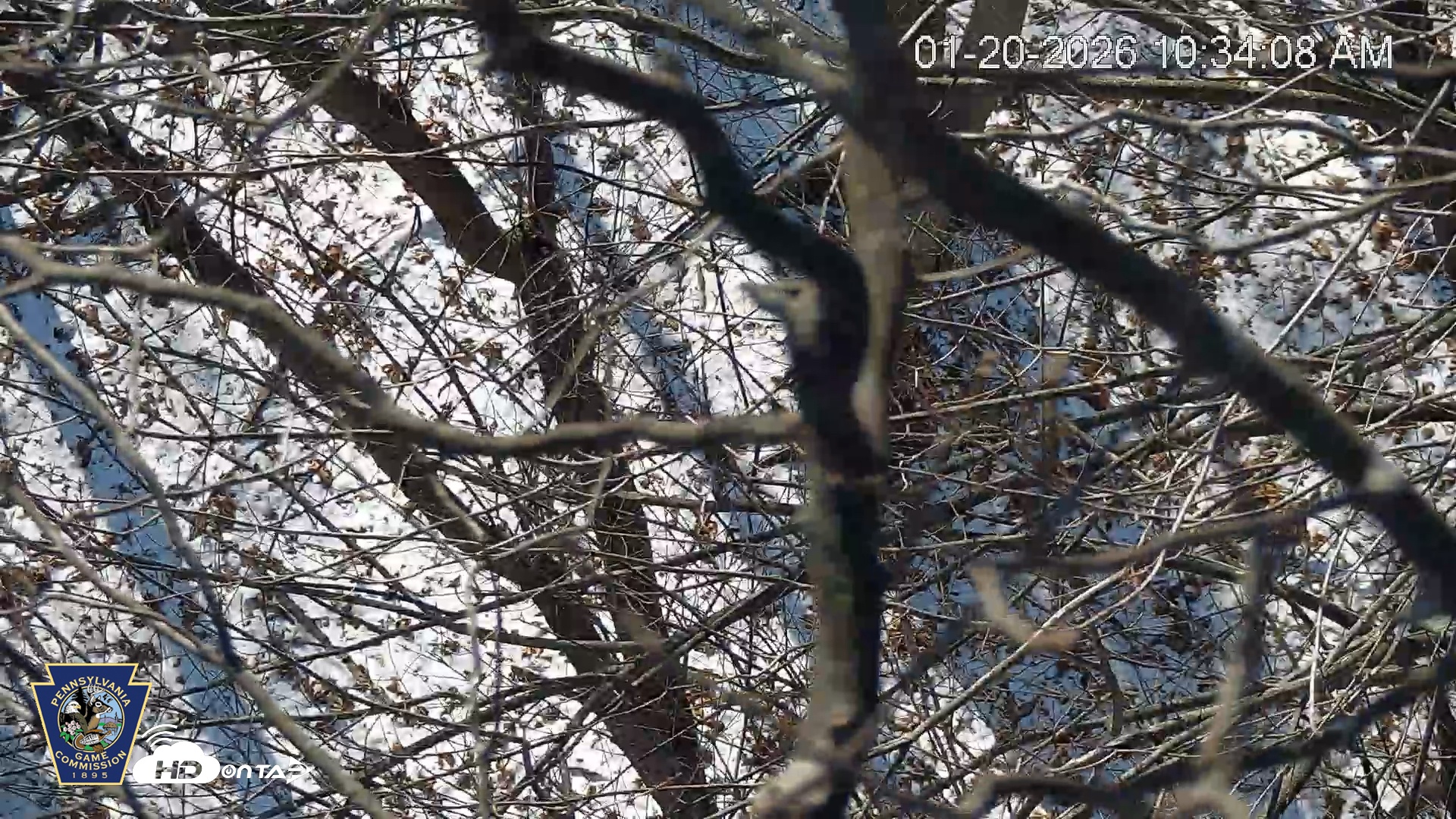 "Peering through the woods on a snowy day. PTZ cam view."